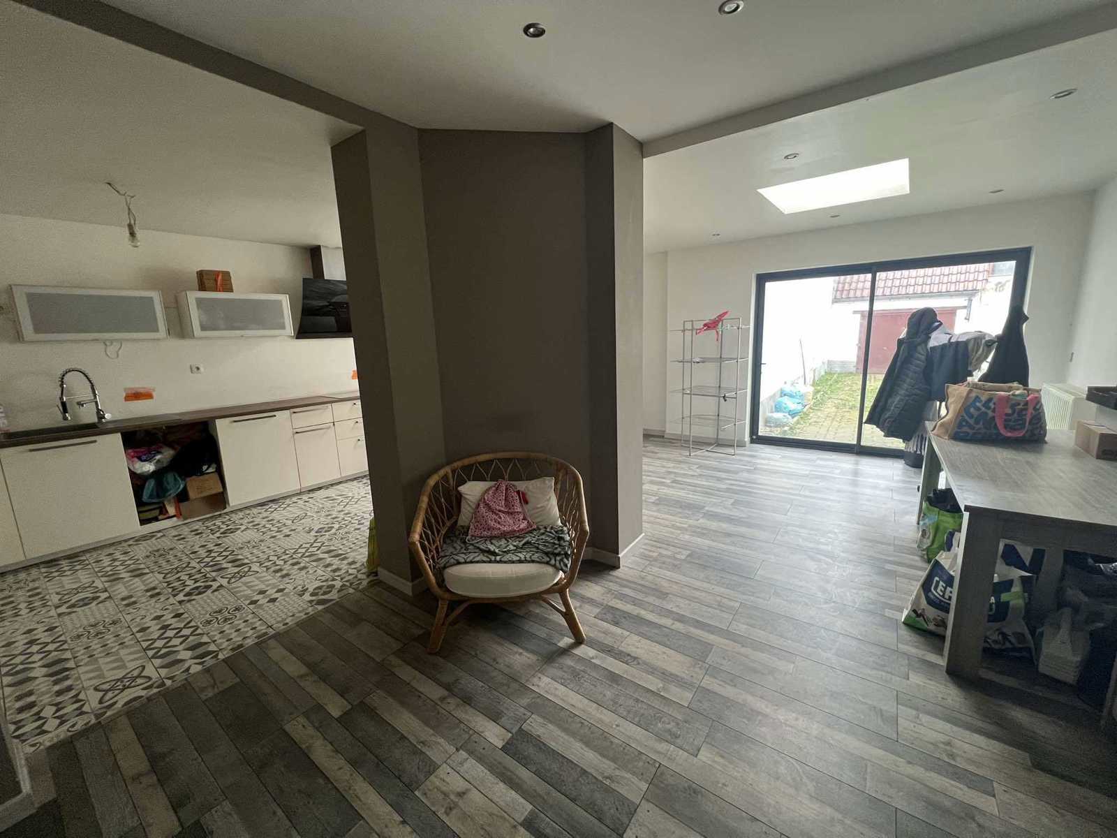 Pièce réserve de +/- 15 m² pour optimiser le rangement ou le stockage - Vaste séjour de +/- 65 m² regroupant cuisine, salon et salle à manger - WC indépendant