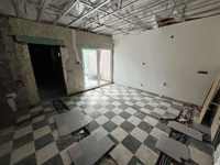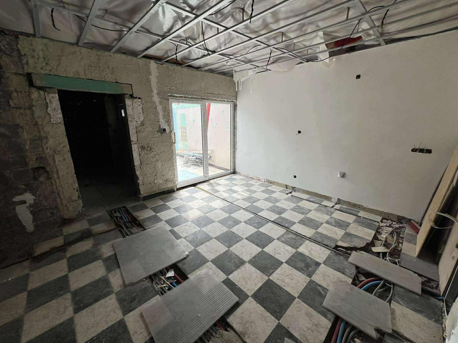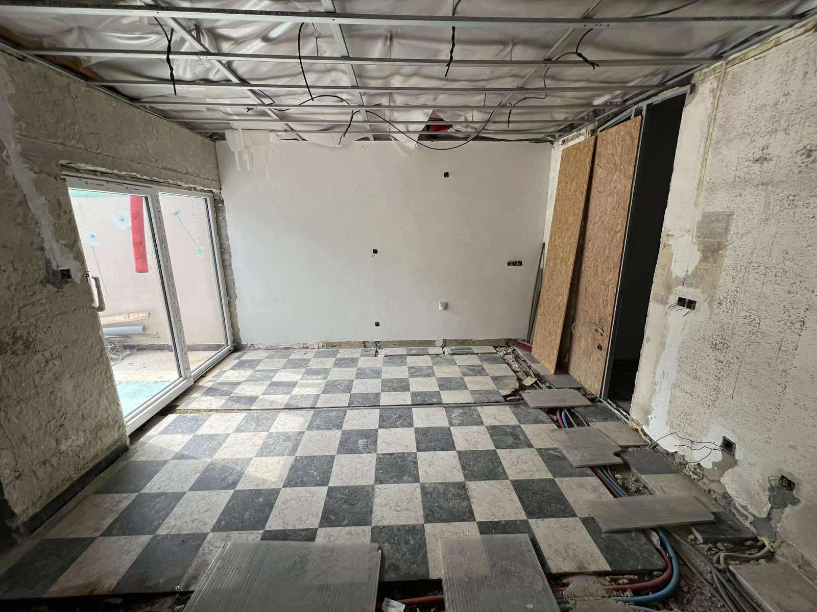 Volume semi ouvert de +/- 37m2 pouvant être aménagé comme salon - l'espace salle à manger et la cuisine -- Salle de bain avec wc et coin buanderie de +/- 13m2