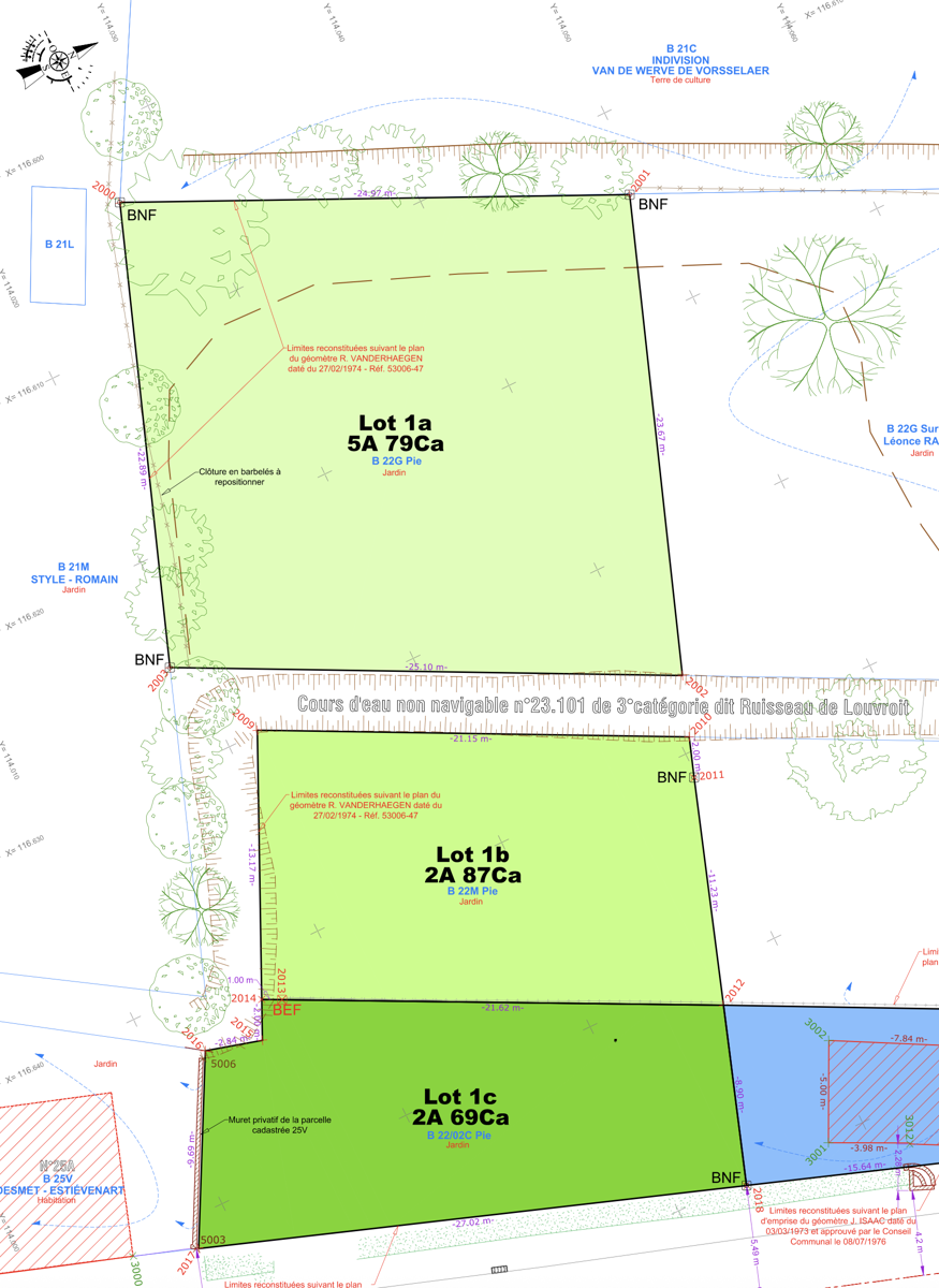 NOMAD présente ce terrain à bâtir d'une contenance totale de 11 ares 35 (3 zones vertes sur le plan de géomètre en photo), situé dans un quartier résidentiel prisé et paisible mais à proximité de toutes les commodités